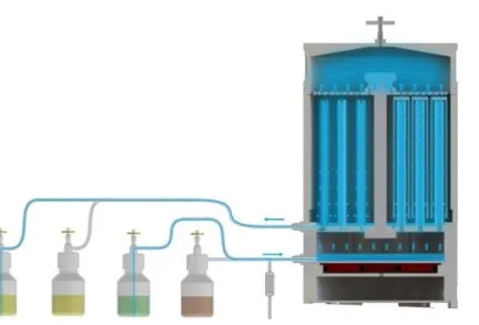 Ultra-pure water is introduced to the system and evaporates into steam to further decontaminate the inner and outer surfaces of vessels. Thanks to the OWV technique, the used water is drained automatically and never reflux to contaminate the clean water. Upon finishing, the residual water will be drained from the system automatically.